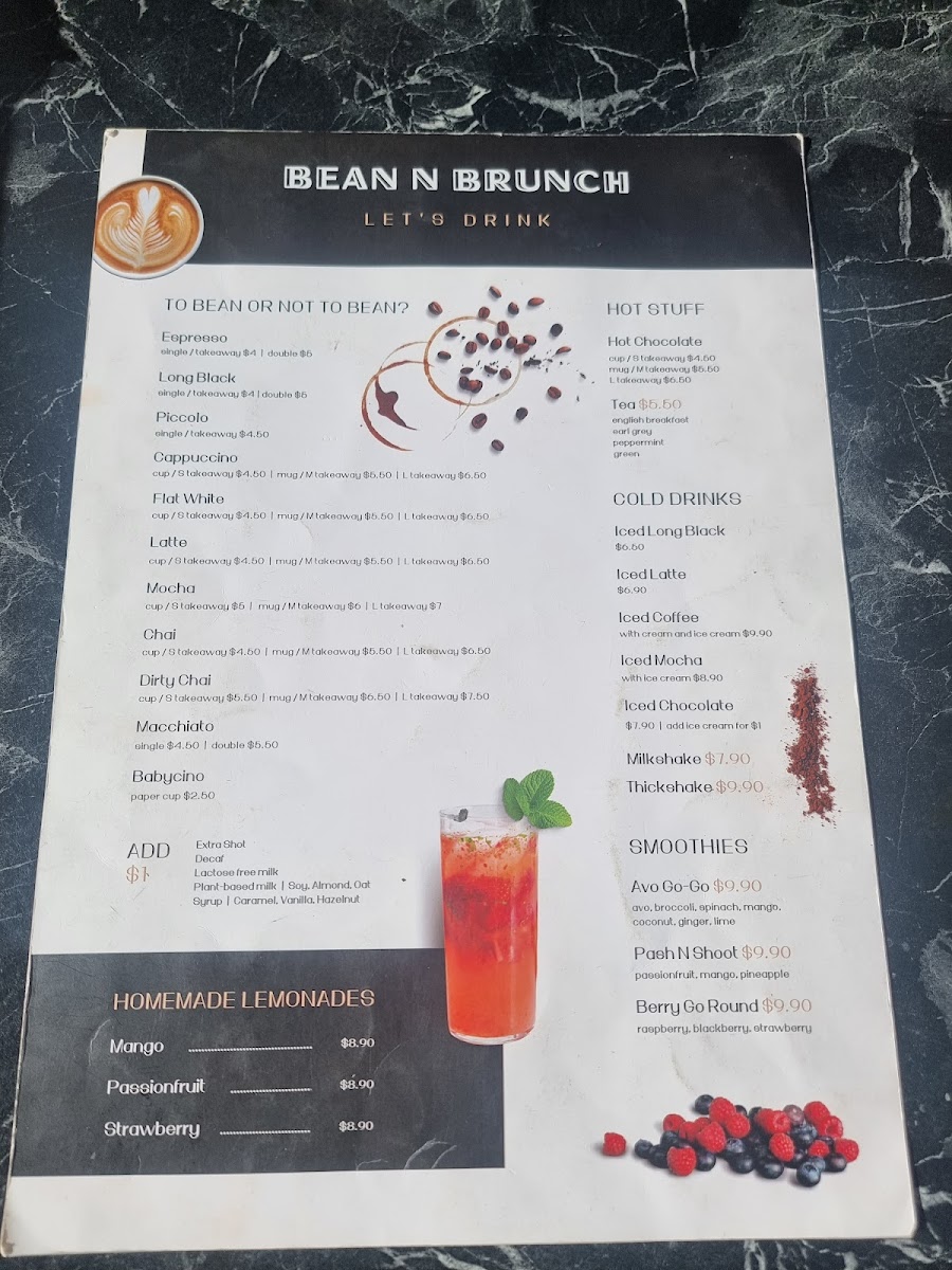 Bean N Brunch Menu